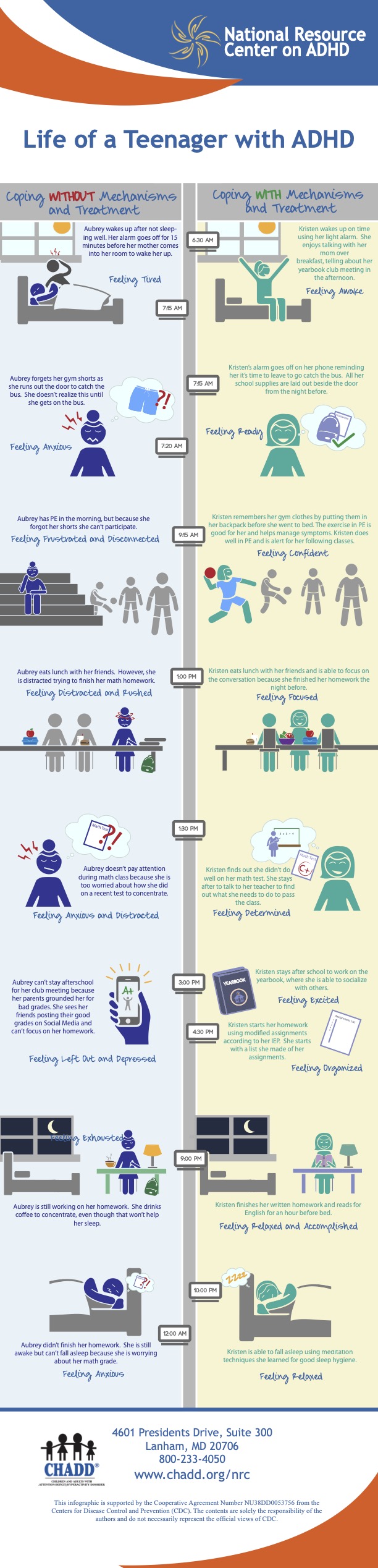 It is common for people to show these behaviors some of the time. However, for people with ADHD, the behaviors are frequent and occur across multiple situations, such as at school, at home, at work, or with family and friends.” {Taken from Attention-Deficit/Hyperactivity Disorder (ADHD) – National Institute of Mental Health (NIMH)}